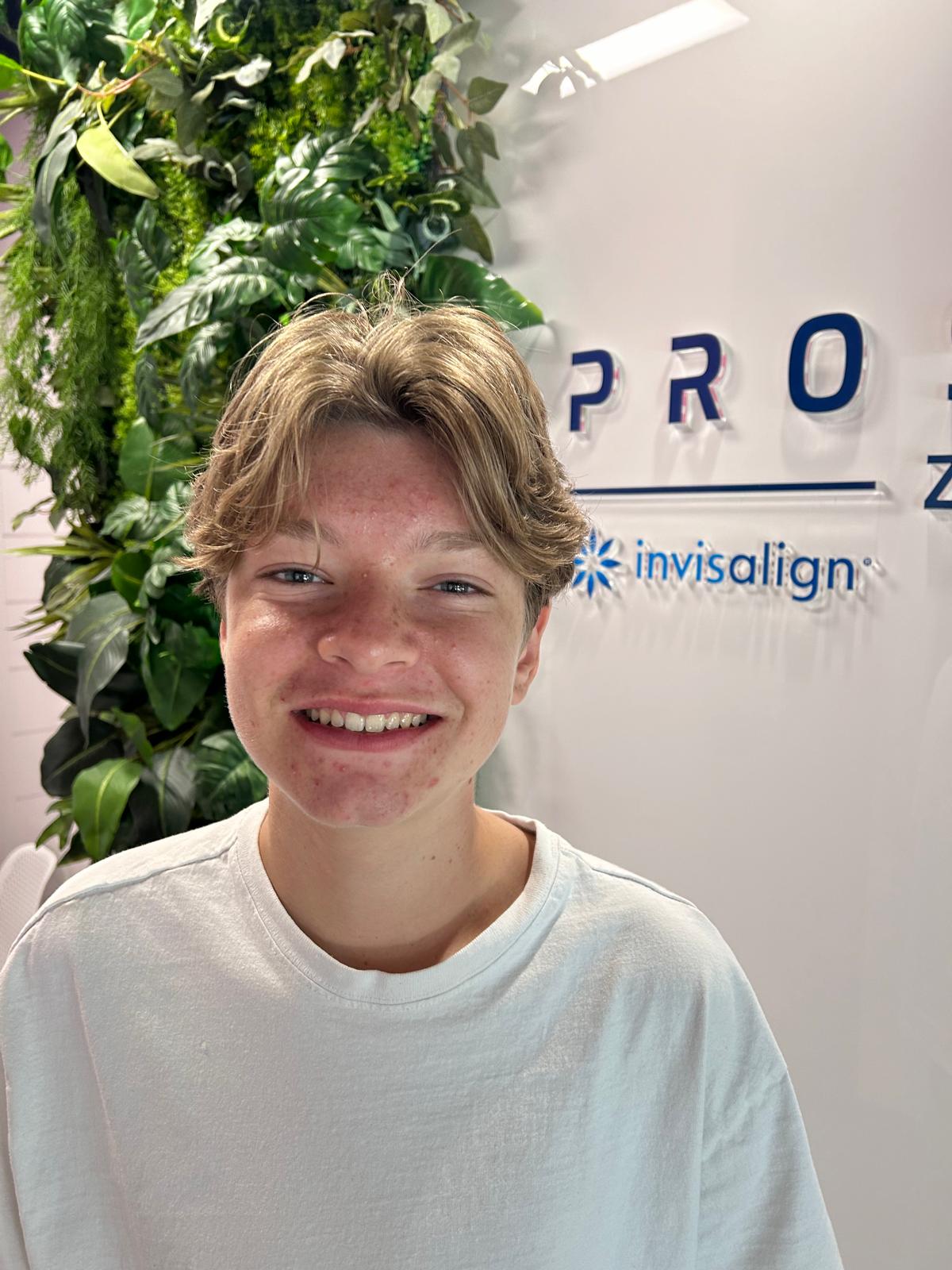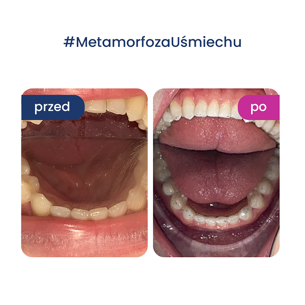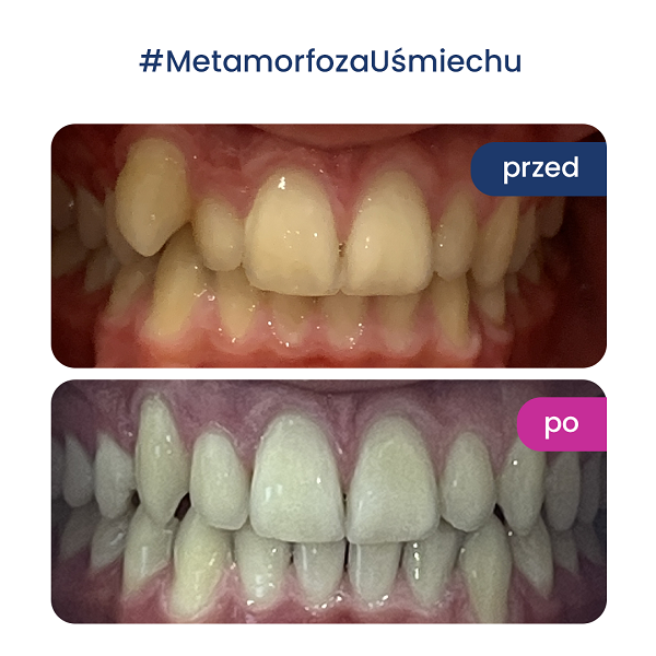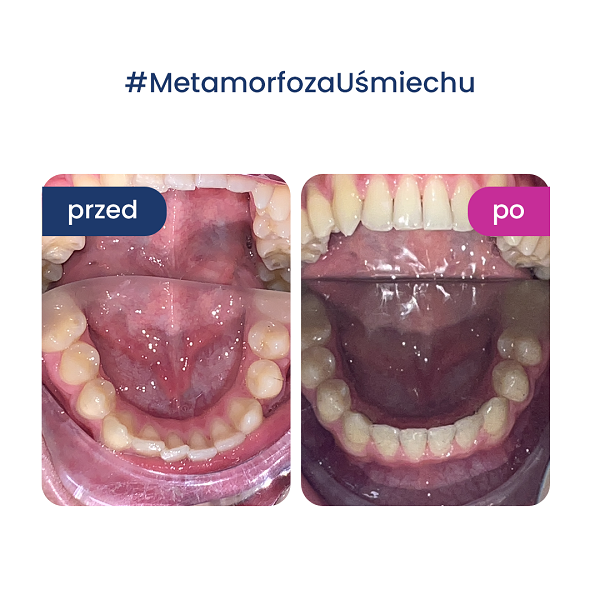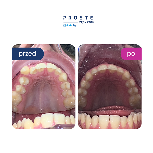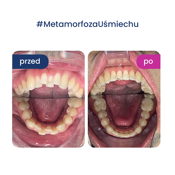 Uśmiechnięty, zawsze pozytywny, cieszący się życiem student. Wybrał nakładki Invisalign®, aby nawet podczas leczenia ortodontycznego cieszyć się pełnią życia i nie musieć z niczego rezygnować m.in. ulubionej dyscypliny sportu, podróży czy ulubionych potraw. Pacjent nosił 27 serii nakładek, które zmieniał co tydzień. Leczenie trwało niecałe 9 miesięcy.